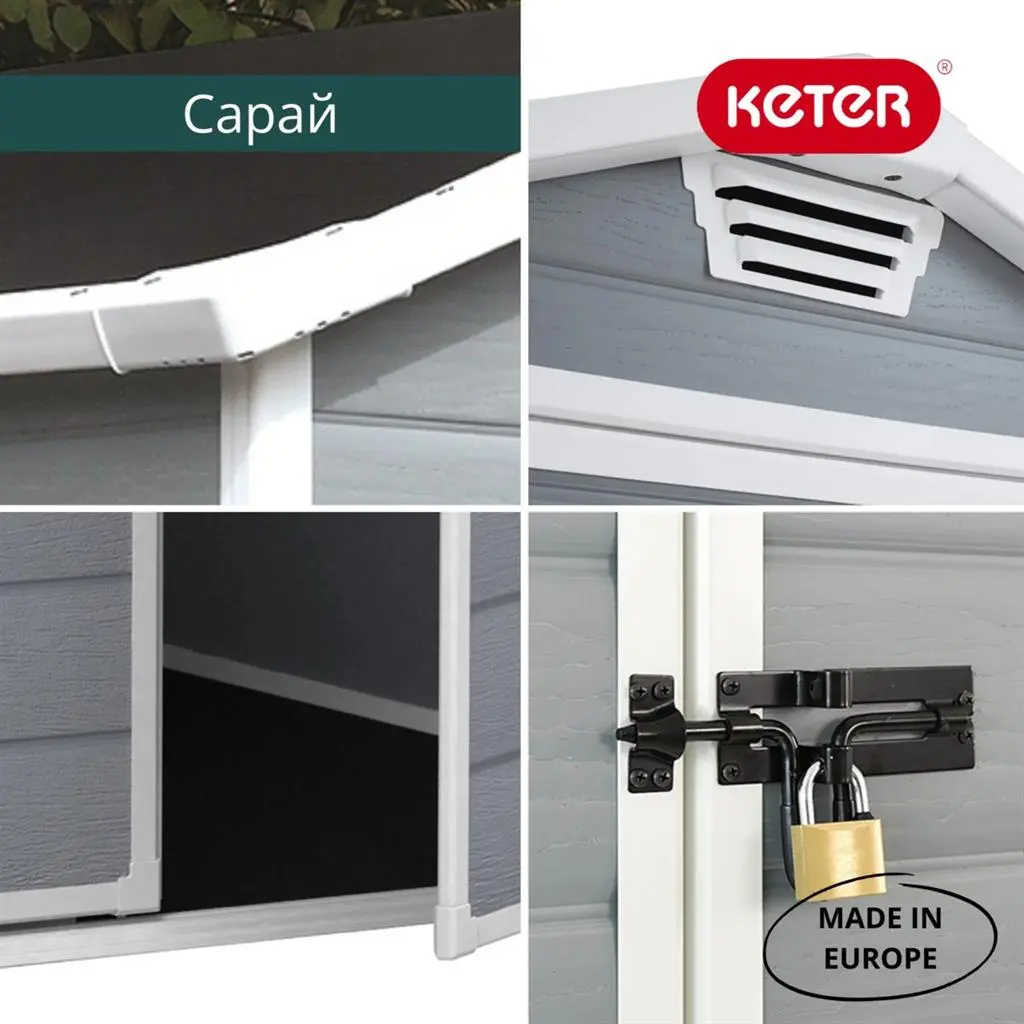Функционален и устойчив градински дом Keter Manor 4×6 е идеалното решение за организация и съхранение на вашите градински инструменти, аксесоари, тревни косачки, мебели и други вещи, които искате да държите защитени и подредени. Този модел е изработен от здрав двуслоен пластмасов материал, който не изисква боядисване или специална поддръжка, устойчив е на UV лъчи, снег, влага и атмосферни условия и запазва своята форма и цвят през годините.