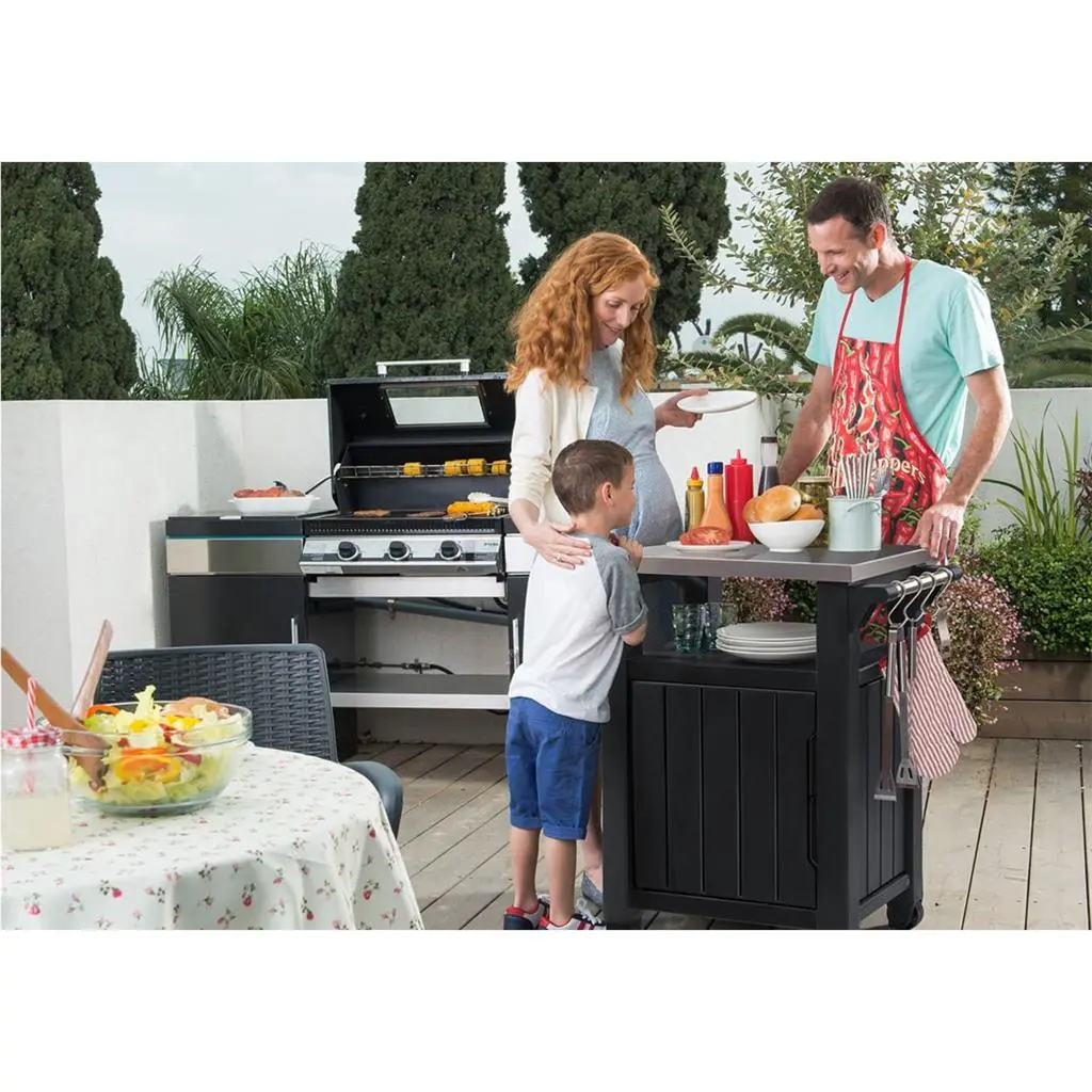 Стилен и практичен градински бар‑стол Keter Unity 105 L е отлично допълнение към вашата градина, тераса или двор. Този продукт съчетава функционалност, пространство за съхранение и удобна работна повърхност, което го прави особено подходящ за грил зона, сервиране на храна, подготовка на ястия или подредба на аксесоари при събирания на открито.