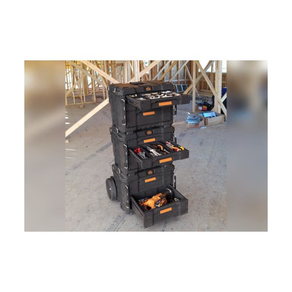 Специалният дизайн на XL кутията позволява монтирането на телескопична дръжка с колела (не е включена), като така тя може да се използва като мобилна кутия. Освен това може да се окачи на стена (включени са L-образни скоби), което осигурява лесен достъп до инструментите и по-добра организация на работното пространство.