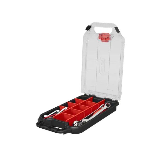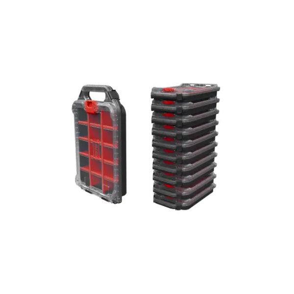 Прозрачният капак прави много лесно намирането на съдържанието на органайзера, а специалното уплътнение в капака защитава съдържанието от прах, влага и неволен контакт с вода.