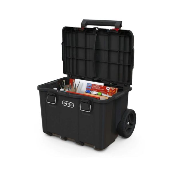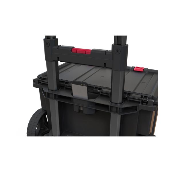 Практичната и много просторна кутия е оборудвана с телескопична, удобна дръжка и колела, които осигуряват удобен и безопасен транспорт.