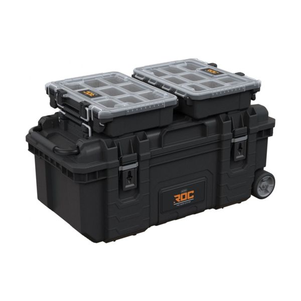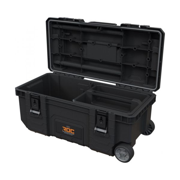 Мобилният куфар за инструменти ROC Pro Gear 2.0 28″ на колела е създаден, за да улесни транспортирането на големи електроинструменти и нивелири. Здравата му конструкция с допълнително уплътнение защитава ценната техника от удари, прах и вода.
