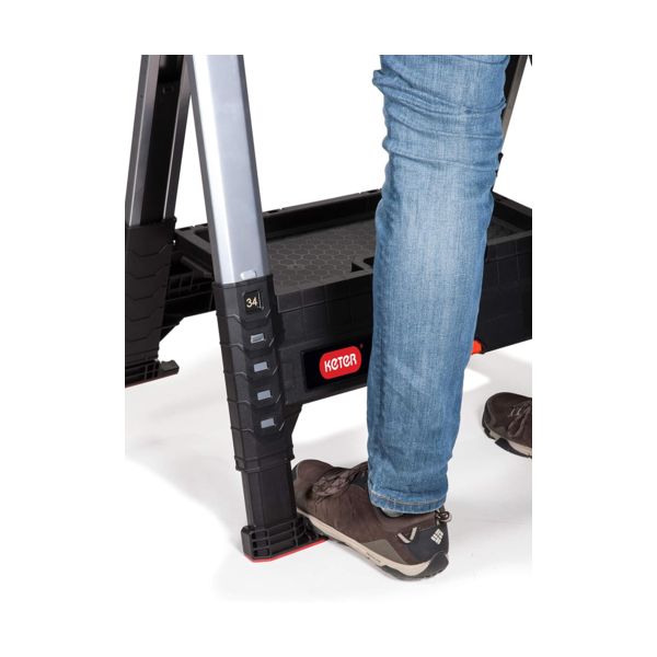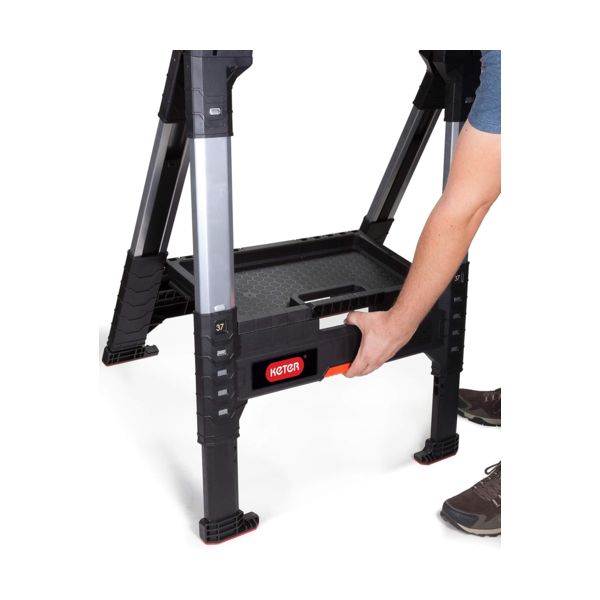 Keter Roc Lumberjack е подходящ както за професионалисти, така и за любители на „Направи си сам“, които се нуждаят от многофункционален продукт, за да се справят с ежедневните си предизвикателства. Той използва уникална система за отваряне и затваряне, предлагаща множество настройки за височина. Бърз и лесен за сглобяване, дори върху неравни повърхности. Със здрави метални крака, които издържат натоварване до 1 360 кг (3 000 lbs). Може да се използва по различни начини за създаване на уникално работно пространство, което да отговаря на различни проекти. Включен е многофункционален дървен елемент с размер 9 x 71 см.
