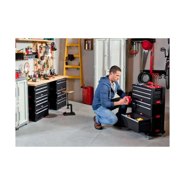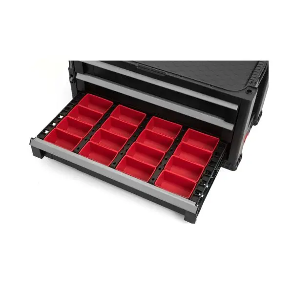 Това просторен шкаф с 6 чекмеджета за инструменти, който осигурява достатъчно място за малки и обемисти предмети, което го прави чудесен избор за професионалисти и ентусиасти. Вградените въртящи се колела ви дават свободата да премествате инструментите и аксесоарите си където и да работите. Може да се комбинира с другите шкафове за инструменти от серията.