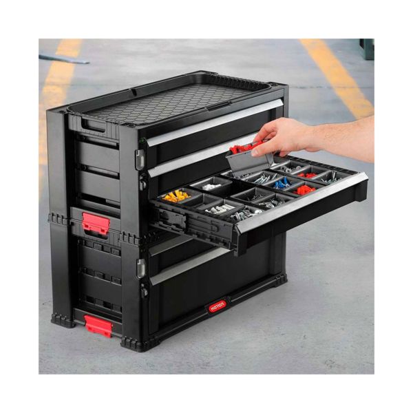 Удобен стелаж за инструменти с 3 чекмеджета.